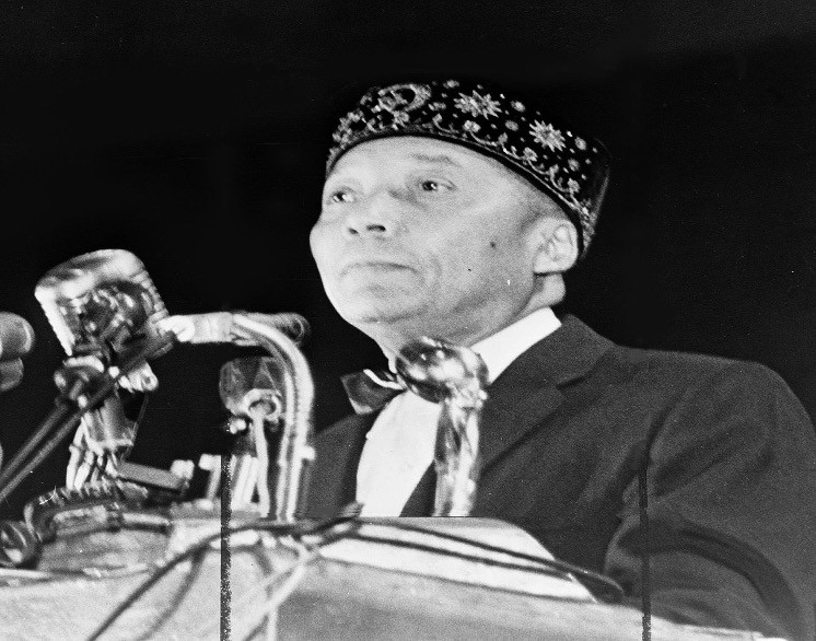 Elijah Muhammad speaking at a gathering of the Nation of Islam members in 1964. Photo by New York World-Telegram and the Sun staff photographer, Stanley Wolfson.