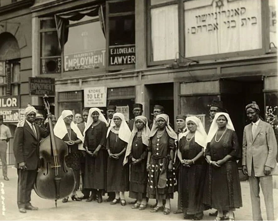 Among several of the religio-racial movements that emerged in northern US cities in the context of the Great Migration were groups collectively known as Ethiopian Hebrews (or Black Jews or Black Israelites). Ethiopian Hebrew movements were constituted by organizations like the Beth B’nai Abraham Congregation and the Commandment Keepers Ethiopian Hebrew Congregation in Harlem. The Beth B’nai Abraham Congregation was established in 1924 by Arnold Josiah Ford, working together with Samuel Moshe Valentine and Mordecai Herman. Ford had emigrated to the United States from Barbados in the early 1920s before settling in New York, and his teachings on race and religion were heavily influenced by Marcus Garvey and the Universal Negro Improvement Association, or UNIA. The Commandment Keepers Ethiopian Hebrew Congregation was founded by another African-Caribbean immigrant to the US named Wentworth Arthur Matthew, who had moved to Harlem from Saint Kitts in 1913.