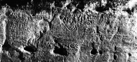 The absence of any explicit religious self-definition inside sites visited for religious purposes is not unheard of. However, such inscriptions were commonly associated with a drawing which functioned as a religious identity marker: usually a menorah (seven-branched candelabra) for Jews and a cross for Christians. Yet only a few ancient menorot were etched on the walls between the 4th and 6th century CE. As for crosses, there may be one, but its design dates it to the Middle Ages. In addition to the menorot, at least one scene is depicted on the western wall of the cave, but it is heavily mutilated. Some argue that it originally showed a Roman priest kneeling before the statue of a god, as well as a vessel used for sacrifice; similar iconographies are found on Roman coinages.