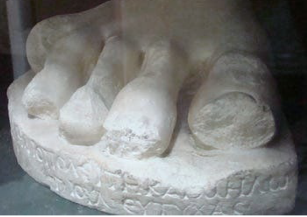 The monumental marble foot with its inscription (photograph by Asher Ovadiah)