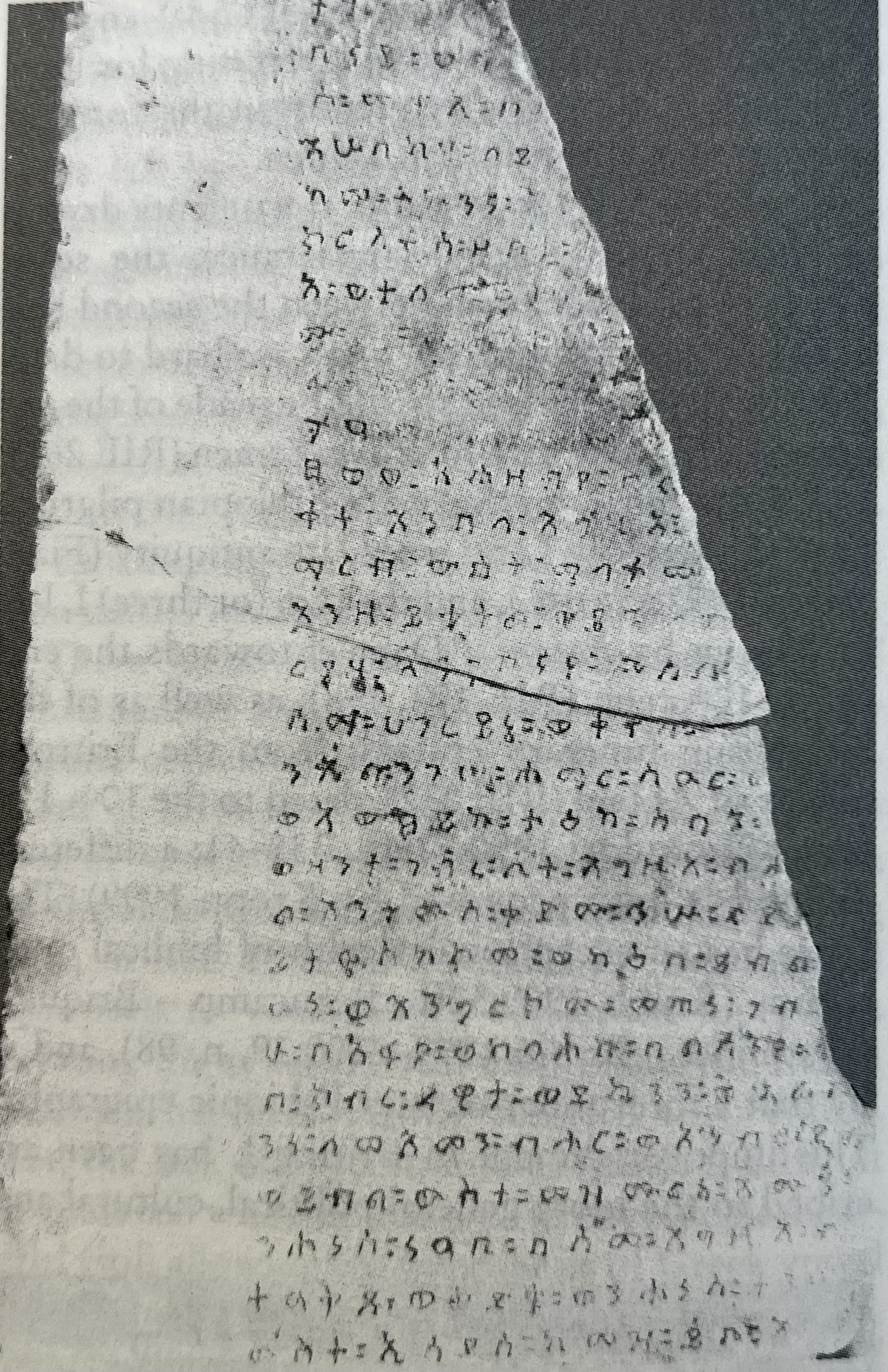 The Marib inscription of 525 CE. Ge’ez. From Encyclopaedia Aethiopica vol. 3, Siegbert Uhlig ed., Harrassowitz Verlag, Wiebaden (2007), p. 162.