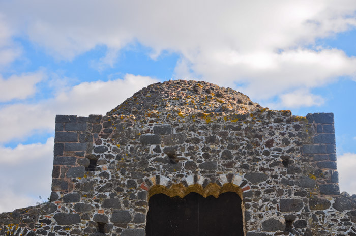 In Alcantara’s valley we find another sign of interchange among the diverse communities that resided in Sicily. Near the town of Castiglione di Sicilia, a stone’s throw from the river, stands an intriguing structure. This is the Church of Saint Domenica, designated as a national monument since 1909. The church is a small rectangular building topped with a small dome. The larger entrance is open to the East, while a smaller door, leading to a sort of courtyard (perhaps an old cemetery), is located on the side. The facade is characterized by the presence of a large triple window, while inside, a vaulted ceiling adorns the space. The interior is divided into a transept and a nave separated into three parts by arches.