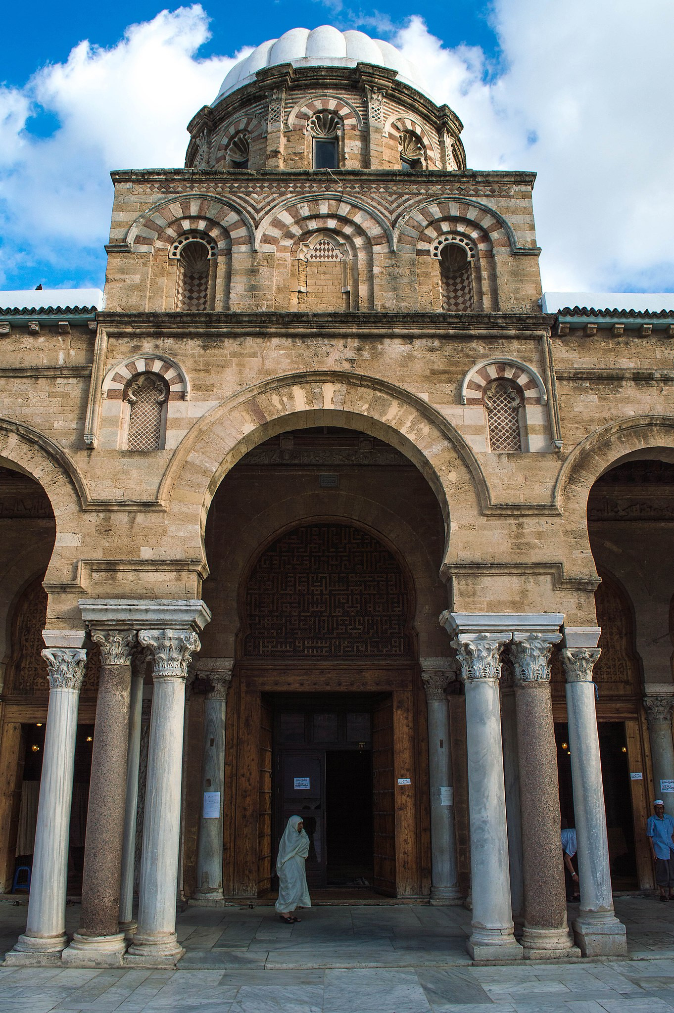Central entrance to the prayer hall, and its dome, Al-Zaytuna Mosque, Tunis, 9th century. Note the polychrome arches of the windows (Wikimedia Commons)