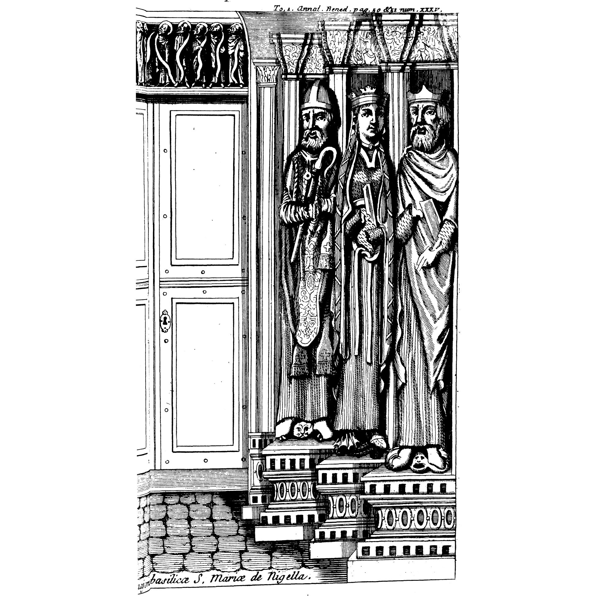Mabillon, Jean. Annales Ordinis Sancti Benedicti. Tome I, Paris, 1703. Image taken from p. 51.
